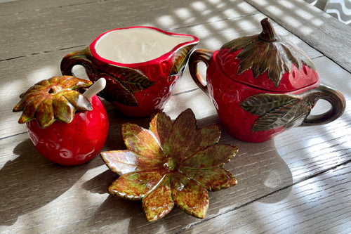 Strawberry Cream & Sugar Set with Jam Jar and Spoon Rest